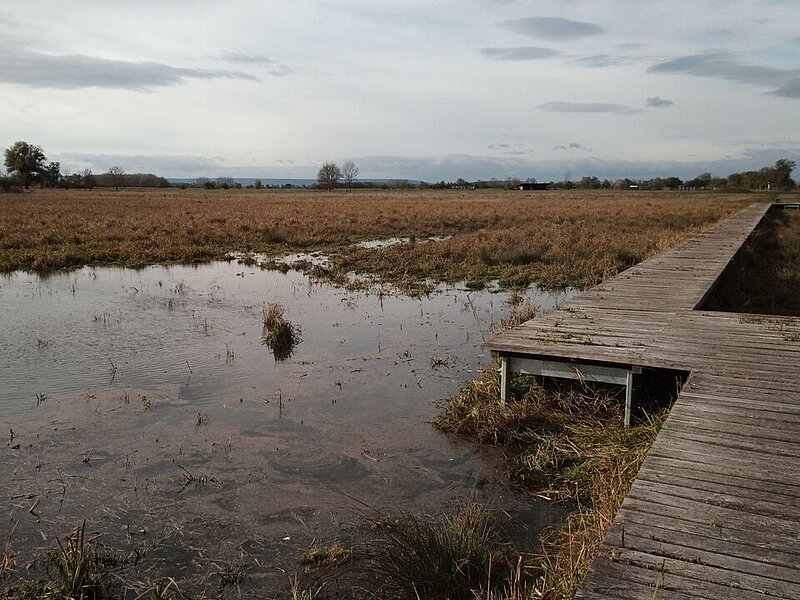 Auch im Alperstedter Ried wurden Baumaßnahmen am Aussichtsturm, zur Optimierung der Wiedervernässung, durchgeführt. Diese sind weitgehend abgeschlossen und das Wasser konnte die Feuchtmulden bereits wieder füllen. Zukünftig kann das Wasser der Quelltöpfe Dank dem neuen Schieber gezielter auch in die südlichen, wertvollen Feuchtwiesen zurückgestaut werden und dort für einen hohen Grundwasserstand sorgen. Insgesamt kann das Moor so seine wichtige Schwammfunktion erfüllen und mehr Wasser im Ried halten.