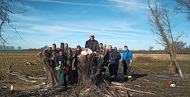 Letzten Samstag war es wieder Zeit für Kurzhaar-Frisuren. Die Kameraden der Feuerwehr Alperstedt gingen bei schönstem Sonnenwetter ausgewählten Kopfweiden im Alperstedter Ried an den Kragen, um ihnen dank des geringeren Gewichtes ein längeres Leben zu ermöglichen. Denn je dicker die Äste auf den Köpfen der Weiden, desto größer das Gewicht und die Gefahr auseinander zu brechen. Natürlich freuen sich auch wieder die Weidetiere über die Zweige, die gerade im Winter aufgrund ihrer vielfältigen Inhaltsstoffe gerne angeknabbert werden.