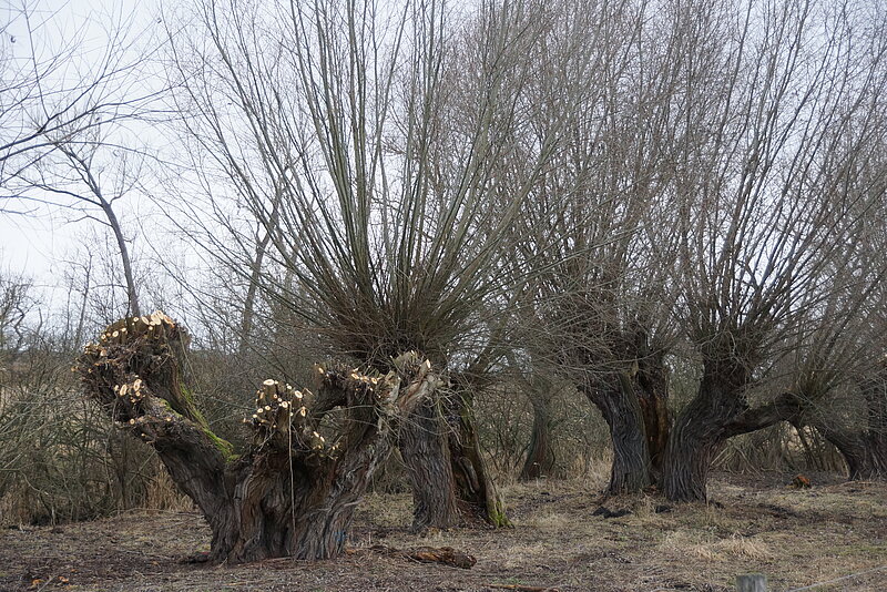Diese alte Nutzungsform ist aus dem ständigen Bedarf an Astmaterial zum Körbeflechten, Fachwerk auskleiden etc. entstanden. Heute werden sie aufgrund ihres hohen Wertes für die Artenvielfalt und ihrem kulturhistorischen Wert gepflegt. Die Weidetiere im Alperstedter Ried freuen sich darauf die Zweige abzuknabbern. Es wird immer nur ein Teil der Bäume gleichzeitig geschnitten, um den Lebens- und Nahrungsraum immer vorzuhalten.