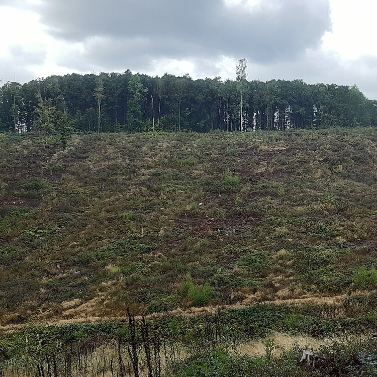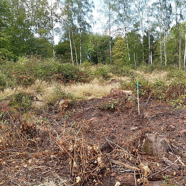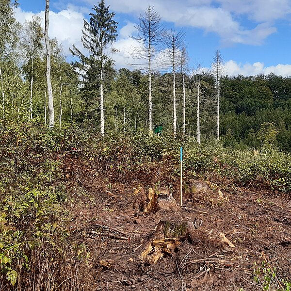 Der durch die verheerenden Waldschäden im Südharz bloßgestellte Wald erholt sich langsam. Das plötzlich auf den Waldboden dringende Licht lässt Brombeeren, Gräser, Kräuter und junge Bäume förmlich "explodieren". In Bockelnhagen am Grünen Band lässt sich diese Entwicklung besonders gut nachvollziehen. Die Stiftung Naturschutz Thüringen unterstützt mit kleinflächigen Pflanzungen die Entwicklung eines klimastabilen Waldes. In Vorbereitung auf die kommende Pflanzsaison wurde der Boden mittels schonender Technik vorbereitet. Im freigelegten Boden werden die kleinen Waldbäume gut in die nächste Waldgeneration starten können.