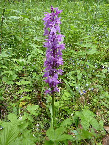 Im Grünen Band in der Gemarkung Titschendorf (Saale-Orla-Kreis) fanden kürzlich Landschaftspflegemaßnahmen statt. In einer gemeinsamen Aktion mit den Bayerischen Staatsforsten wurden Relikte ehemaliger Feuchtwiesen wieder miteinander verbunden. Dazu wurden Fichten zwischen den Wiesen entnommen. Um die Beschattung auf die orchideenreichen Wiesen (Orchis mascula) zu verringern, wurde außerdem südlich der thüringischen Wiesen weiterer Fichtenbewuchs entnommen.