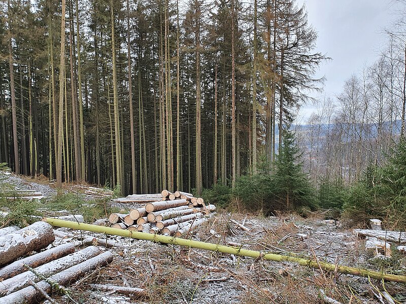 Derzeit finden im Waldgebiet Hopfsberg (Nähe Grenzturm Probstzella) forstliche Maßnahmen zur Stabilisierung in von Trockenheit geschwächten Baumbeständen statt.