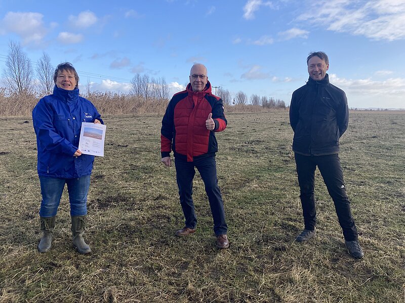 Mit der heutigen Übergabe eines Beweidungs- und Handlungsleitfadens wird das Projekt abgeschlossen und offiziell an die Stiftung Naturschutz Thüringen übergeben. „Die ganzjährige, extensive Beweidung mit Wasserbüffeln ist besonders auf feuchten Standorten eine ökologisch, aber auch ökonomisch sinnvolle Nutzungsform, welche die Artenvielfalt fördert. “, berichtet Projektkoordinatorin Stephanie Krautz vom NABU Thüringen. Die studierte Landschaftsarchitektin betreut seit August 2017 das ENL-Projekt, welches von der Europäischen Union und vom Thüringer Umweltministerium geförderten wurde. „In diesem Jahr konnten wir beobachten, wie sich aufgrund der getroffenen Maßnahmen die Strukturvielfalt auf der Fläche erhöht und beispielsweise an den Randbereichen der Flutmulden Salzpflanzen wie Gemeiner Queller Salicornia europaea dominant auftraten.“