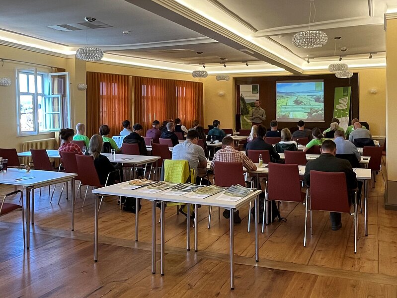 Unsere Veranstaltungsreihe fand in der letzten Woche im Abschnitt „Rhön“ am Grünen Band Thüringen statt, hier agiert unser Gebietsbetreuer Ralf Hofmann. Start der Veranstaltungswoche war am Dienstag, den 12. September mit dem Regionalforum für den Teilraum E: Schmalkalden-Meiningen. Auch hier wurden geplante Maßnahmen und bisherige Inhalte des Pflege-, Entwicklungs- und Informationsplans (PEIPL) für die Region vorgestellt. Das Mittagsessen wurde durch die "Grüne Landküche" bereitgestellt, ein investives Projekt im Rahmen des Projektcalls vom Thüringer Umweltministerium für Gemeinden am Grünen Band. Im Anschluss hielt die 84-jährige Frau Kilian für die Teilnehmenden einen Diavortrag zu geschleiften Orten und Höfen in der Region.