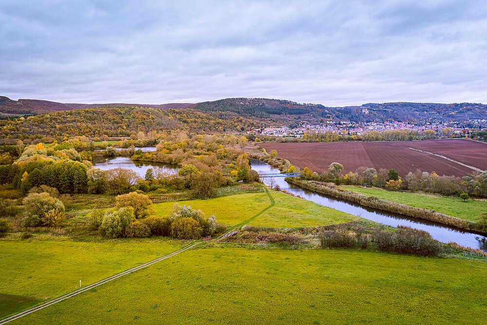 Der Ausbau der Werra zur Bundeswasserstraße, sowie Tiefenerosion und Sedimentablagerungen von Auenlehmen, haben die natürliche Anbindung der Werraauen an den Fluss erheblich beeinträchtigt. Mit dem Projekt „Blaues Band trifft Grünes Band“ soll der Abschnitt zwischen Treffurt und Probstei Zella wieder stärker mit seinen Auen verbunden werden. Es soll in Zukunft somit mehr Wasser in die Aue fließen, wodurch neue Strukturen und Lebensräume entstehen sollen, die sich anschließend weitgehend eigenständig entwickeln oder extensiv, zum Beispiel durch Beweidung, genutzt werden können. In dem gemeinsam mit dem Wassser- und Schifffahrtsamt Weser gegeplanten Projekt sollen auch zusätzliche Maßnahmen zur Flussaufweitung und zur Förderung der natürlichen Dynamik der Werra durchgeführt werden. Ein besonderer Aspekt der Vernetzung ergibt sich durch das Zusammentreffen der beiden überregionalen Biotopverbundsysteme „Blaues Band Deutschland“ und „Grünes Band Deutschland“. Die geplanten Maßnahmen werden eine Aufweitung und Vernetzung der bundesweit bedeutsamen Biotopverbunde sein.