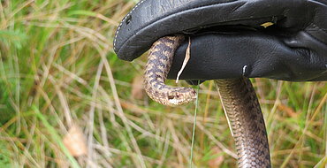 Kreuzottern leben sehr versteckt. Wer trotzdem eine entdeckt, kann sie mit der App "Meine Umwelt" melden. So wird ihr Lebensraum in die Landessysteme eingespeist und kann bei der Planung von Maßnahmen berücksichtigt werden, sodass sich Artenschutzmaßnahmen auf diese Flächen konzentrieren lassen.