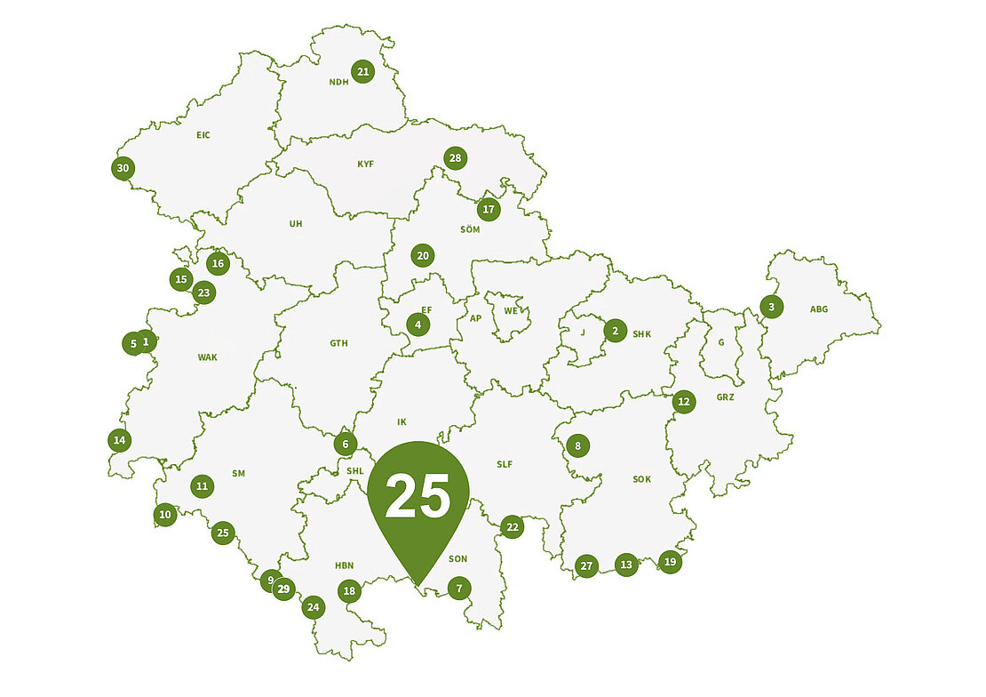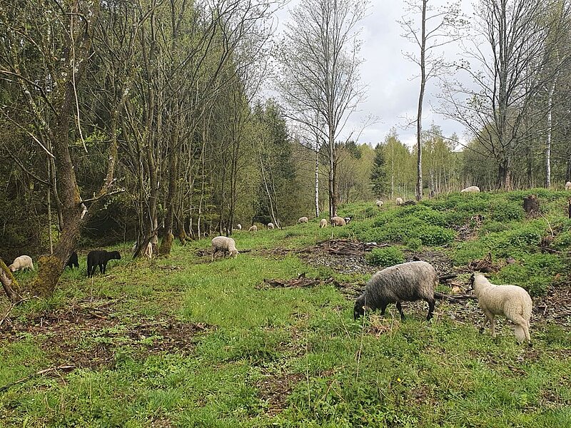 Durch gezielte Offenlandpflege einer Heidefläche am Grünen Band bei Truckendorf (Sonneberg) schaffen wir Licht und Rohbodenflächen für den Keulen-Bärlapp durch die Beseitigung junger Gehölze und die anschließende Beweidung mit Schafen.