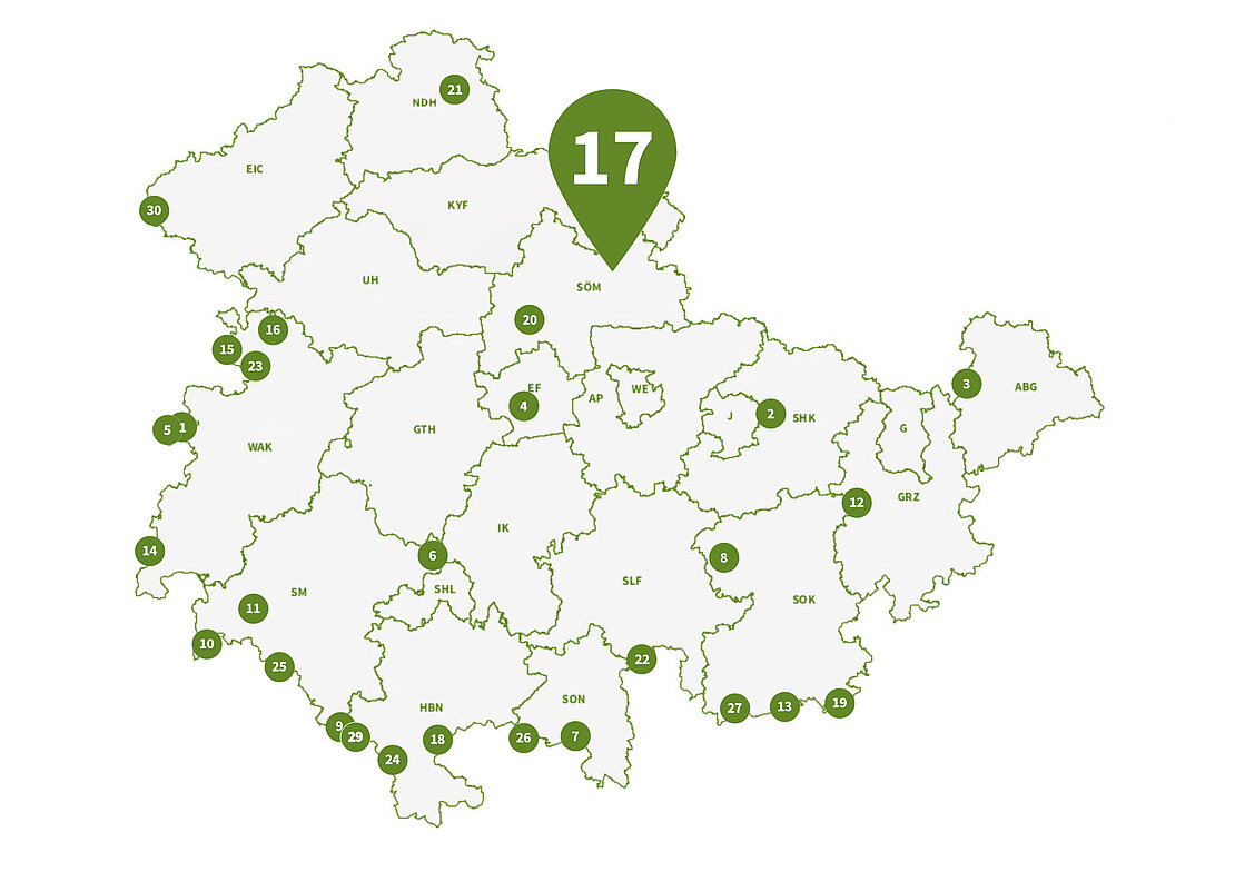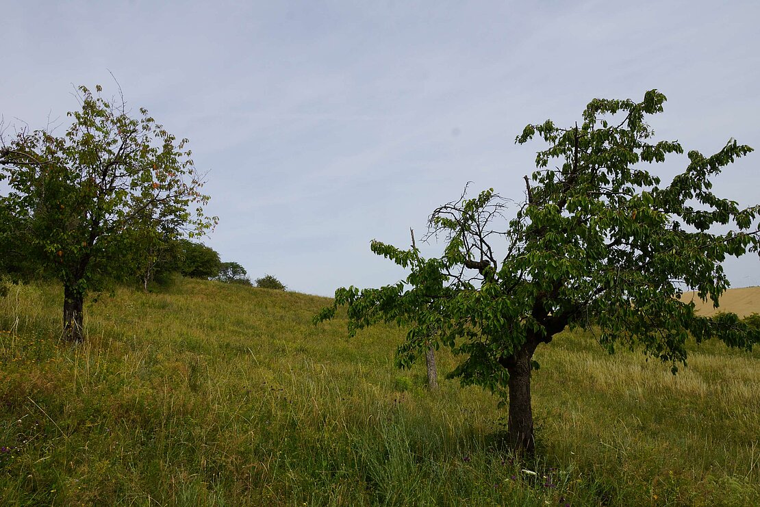 Viele dieser Gebiete verbinden mehrere Lebensraumtypen, wie z. B. die Fläche nördlich von Battgendorf im Landkreis Sömmerda. Dort trifft artenreicher Steppenrasen auf traditionelle Streuobstwiesen, die durch den Landschaftspflegeverband Mittelthüringen fachgerecht gepflegt werden.