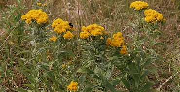 Der Deutsche Alant steht auf der Roten Liste Deutschlands in Gefährdungsstufe 3. Das heißt, sein Bestand ist gefährdet.