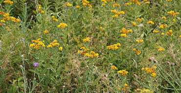 Seine gelben Korbblüten-Köpfchen strahlen einem von Juli bis August schon von Weitem entgegen. Die 30–60 cm hohe, horstig wachsende Staude hat doldenartige Blütenstände mit mehreren Blütenköpfen.