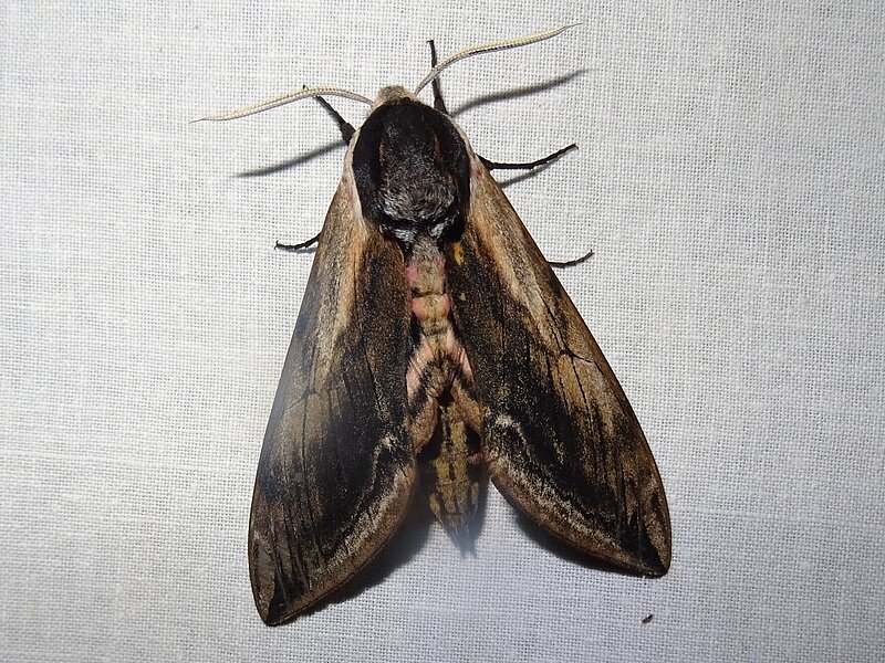 Der Ligusterschwärmer ist ein Nachtfalter und mit einer Flügelspannweite von bis zu 12 cm einer der größten Schmetterlinge Deutschlands.