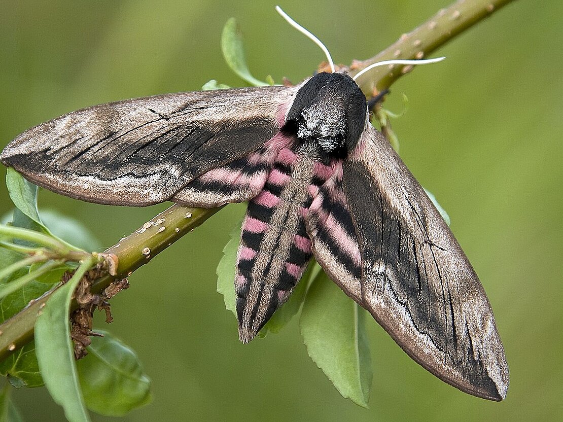Der Ligusterschwärmer steht exemplarisch für die beeindruckend bunte Vielfalt an Nachtfaltern, die man seltener zu Gesicht bekommt. Wie die Tagfalter zählen auch Nachtfalter zu einer großen und zunehmend gefährdeten Artengruppe.