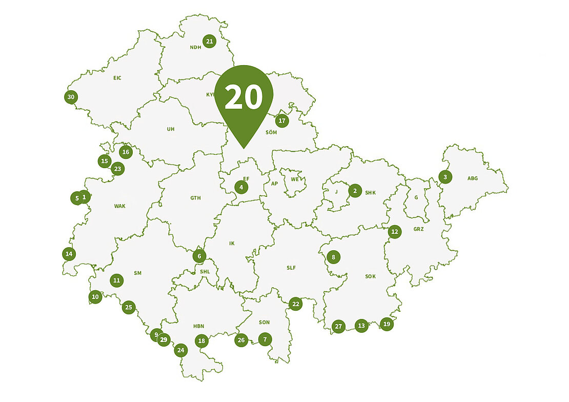 Die Schmale Windelschnecke liebt es warm, feucht und kalkhaltig. In Thüringen versteckt sie sich besonders gern in den Rieden des Thüringer Beckens – etwa im Alperstedter und Haßlebener Ried. Dort findet sie in Röhrichten, Feuchtwiesen und Niedermooren ideale Bedingungen: eine dicke Streuschicht als Schutz und dauerhaft feuchte Böden. Obwohl europaweit verbreitet, bildet sie nur selten größere Populationen. Umso wertvoller sind unsere thüringischen Vorkommen!